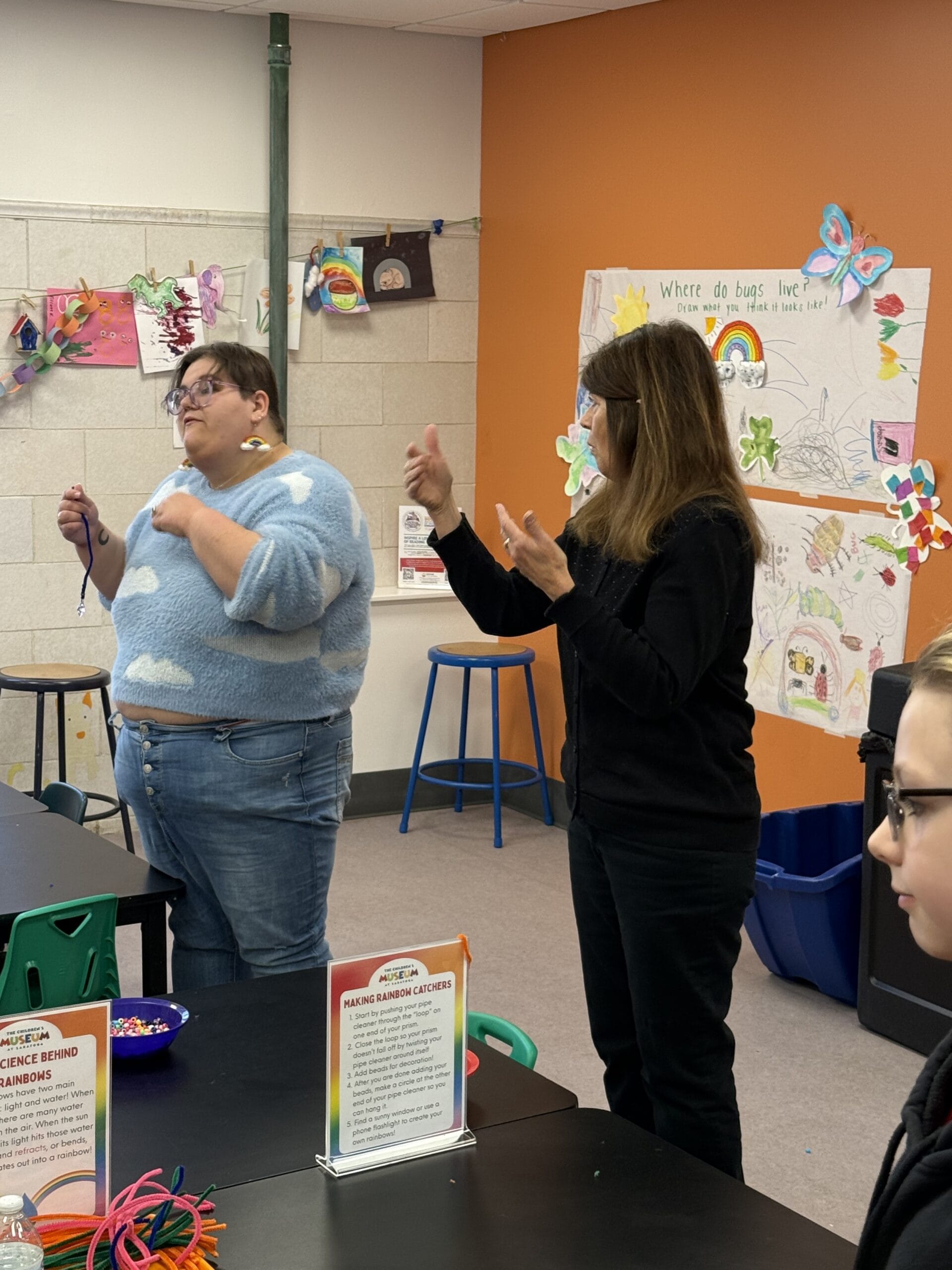 Everyone had a wonderful time. There were some much interactive and fun educational areas with so many things to do. Our Interpreter was there in the “rainbow room” where one of their staff was teaching the children about rainbows and helping with a fun arts and crafts project.😊
